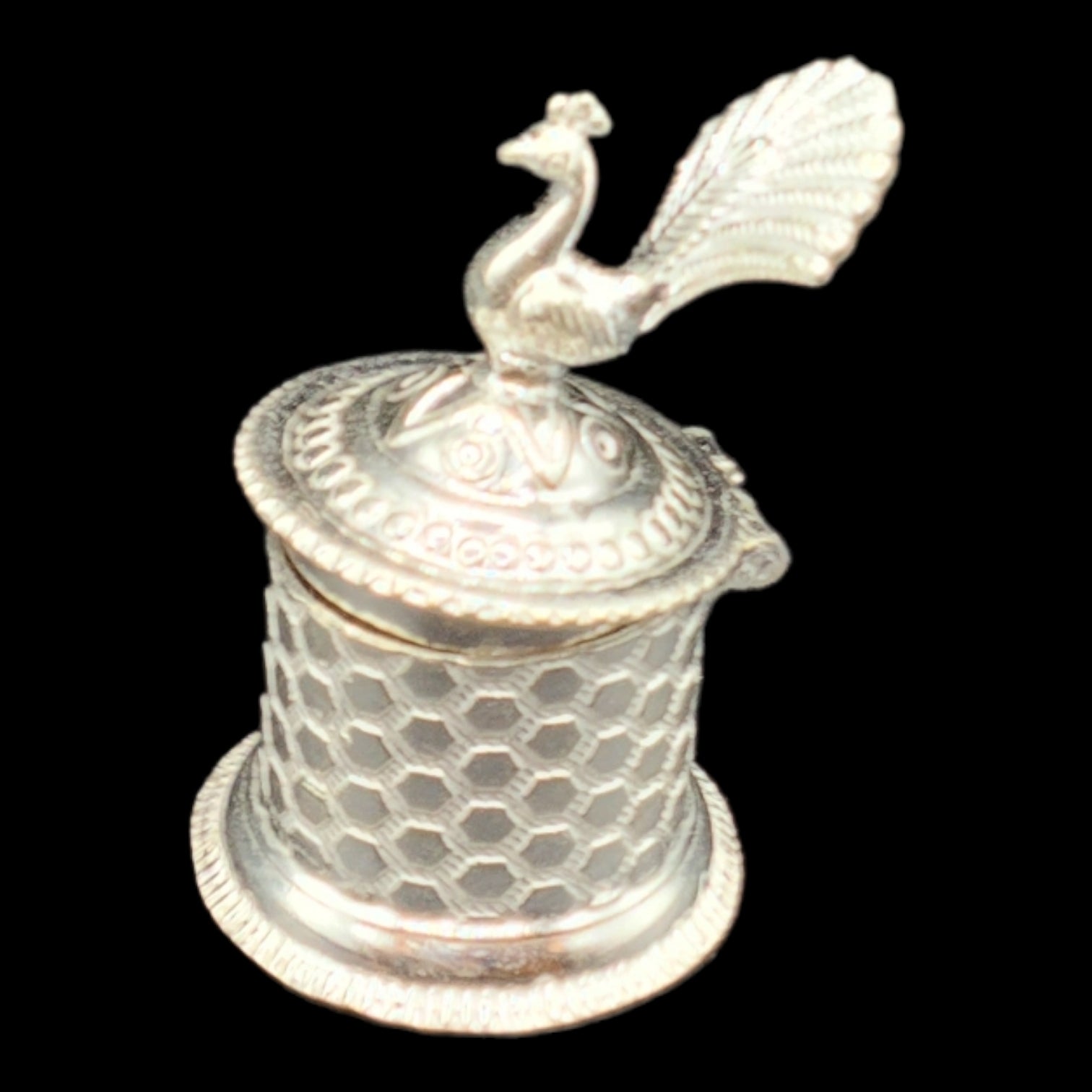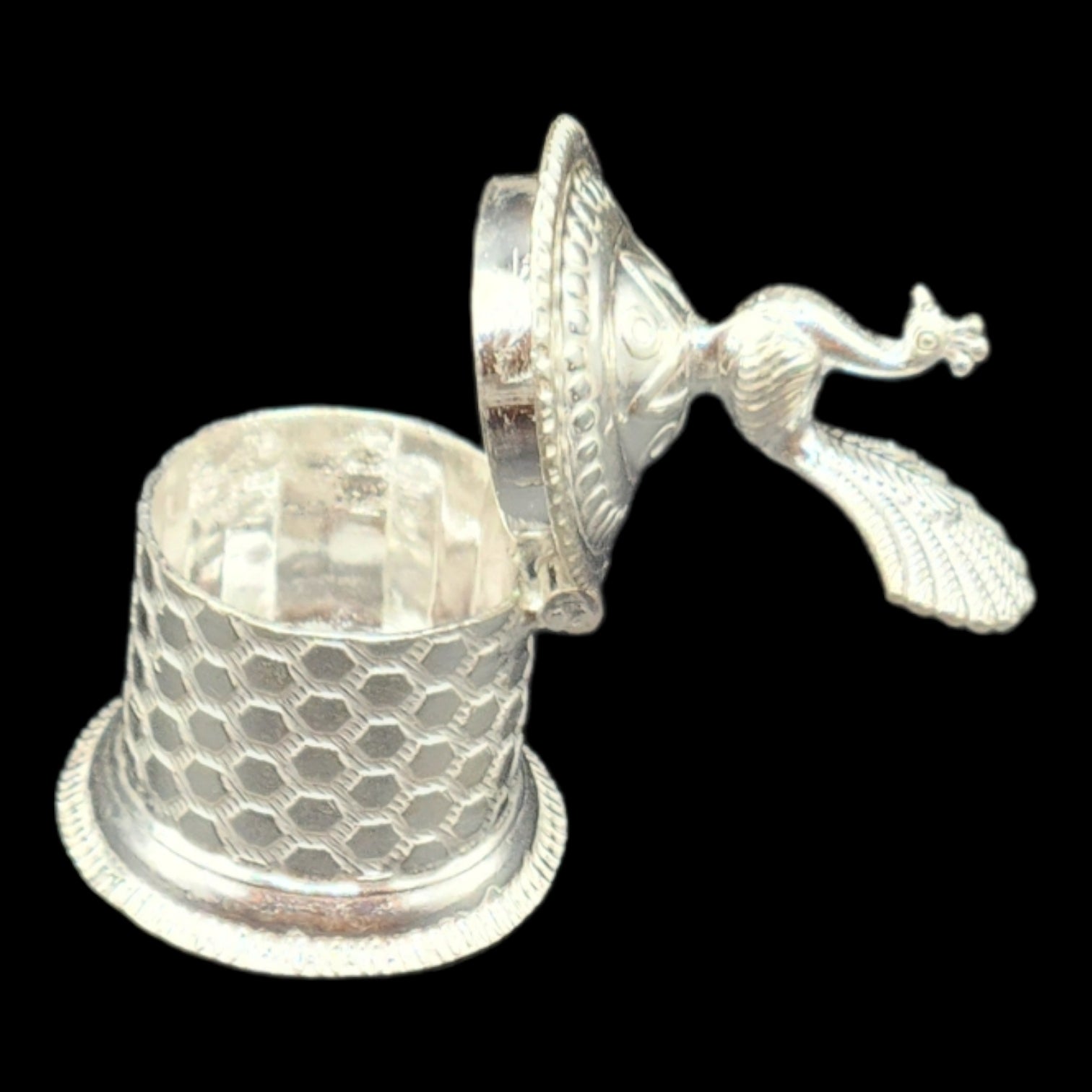 Silver Traditional Sindoor Box | Peacock Sindoor Dabbi