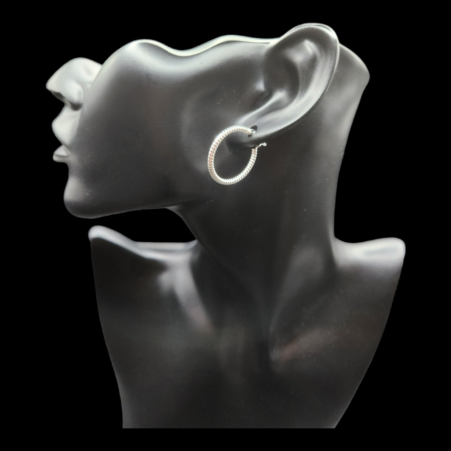 925 Sterling Silver Embellished Thick Hoop 2.5 CM