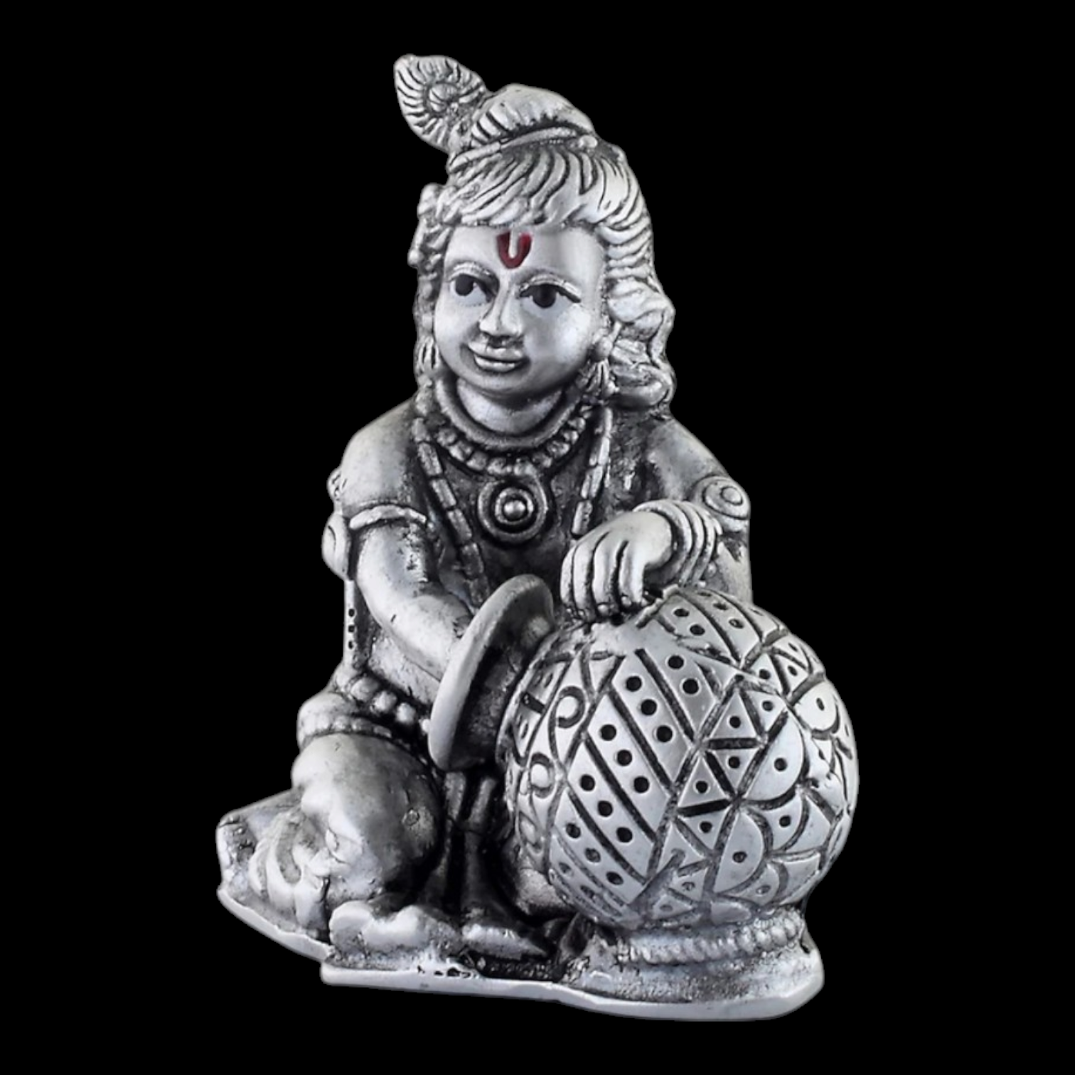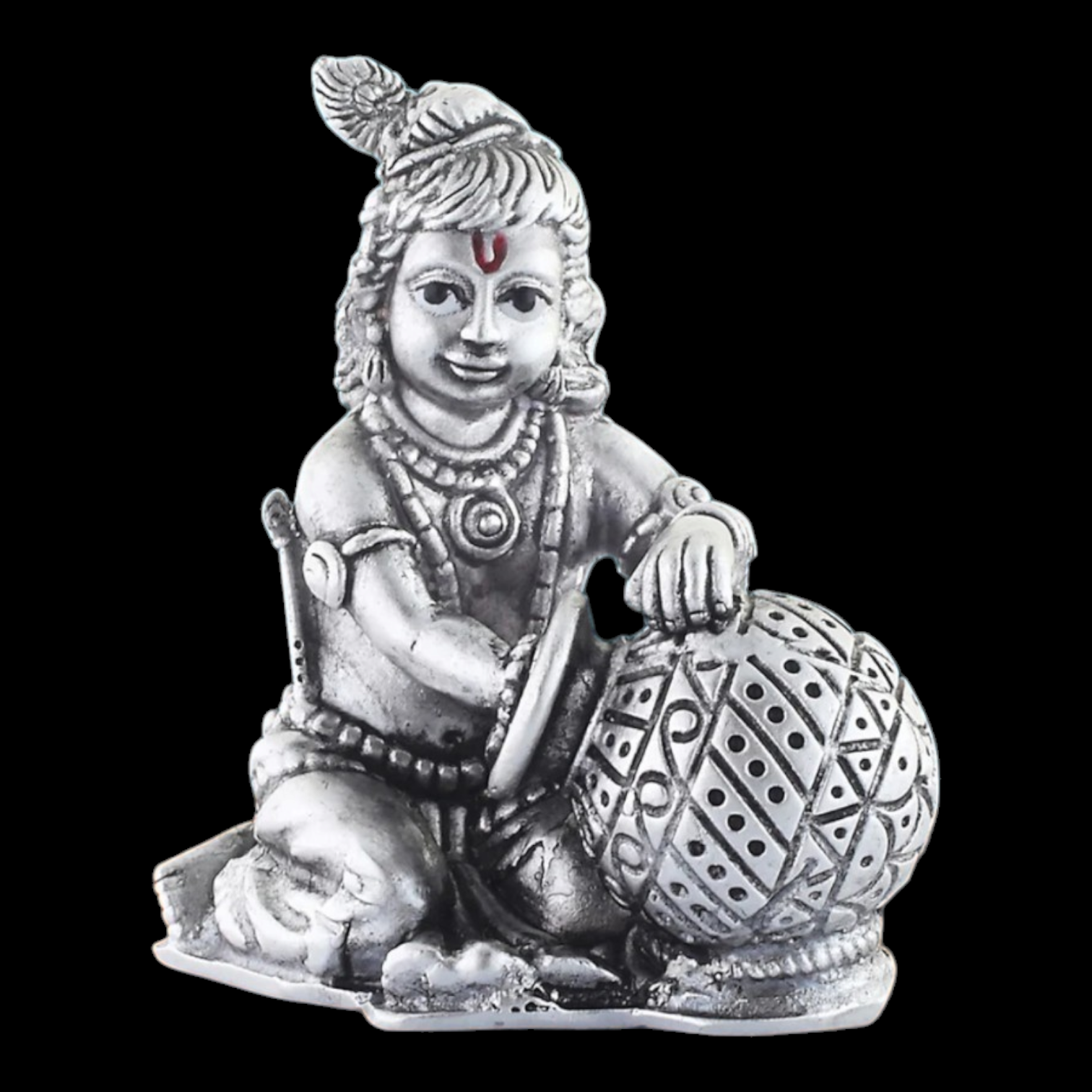 925 silver bal gopal krishna idol .Beautifully Crafted: This Krishna figurine is intricately carved from silver alloy with fine details depicting Baby Krishna playing with butter (Makhan Chor)